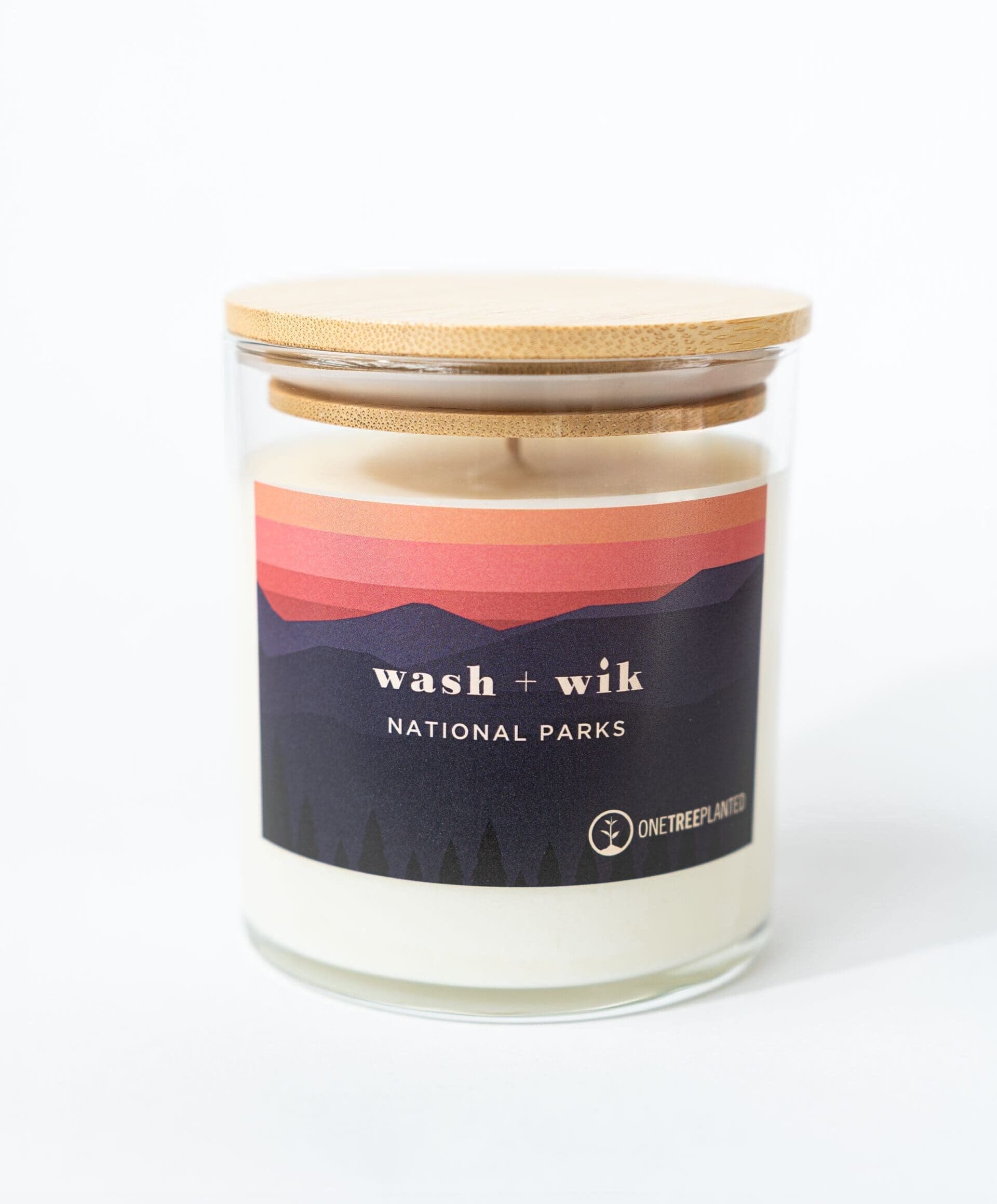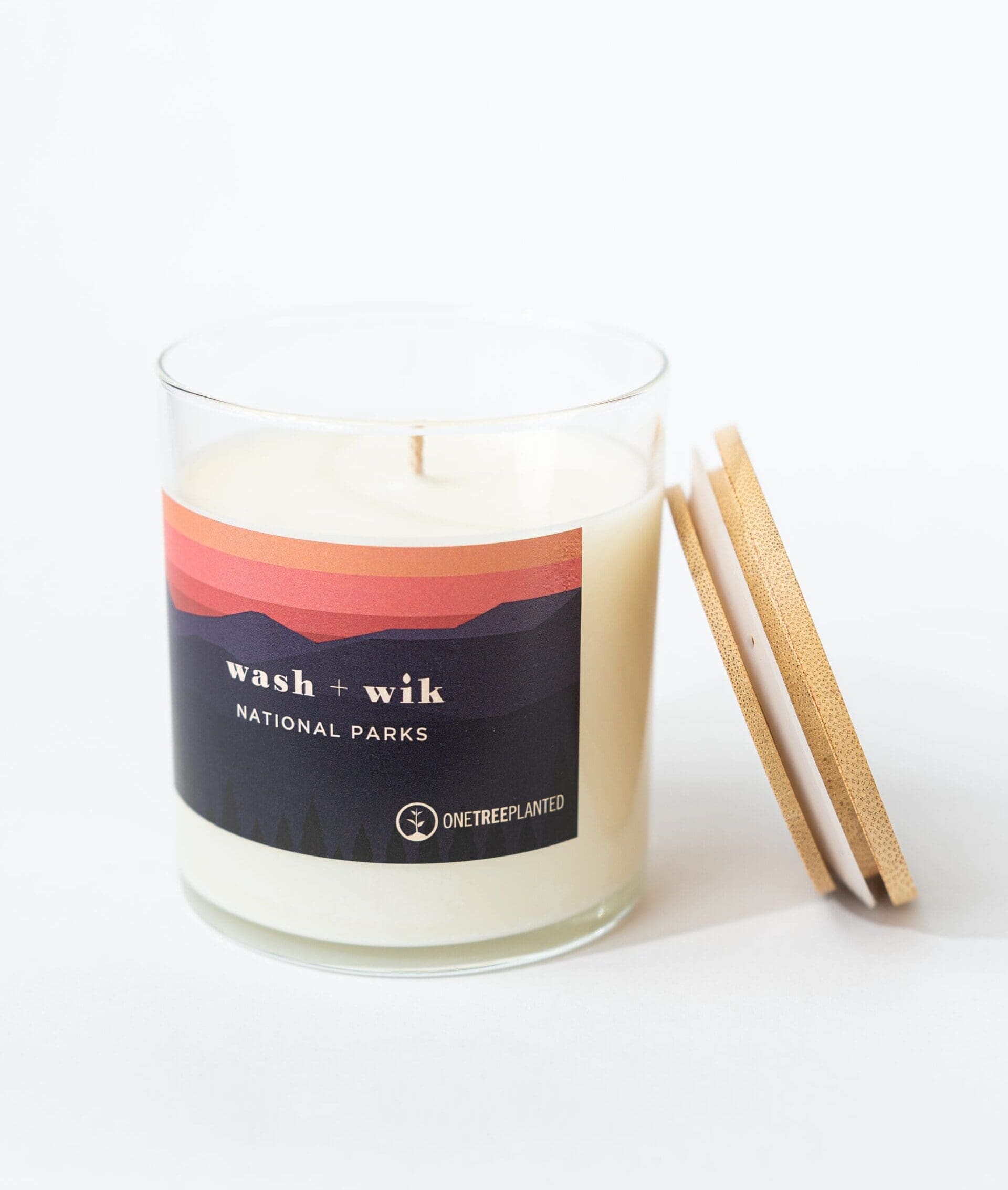 The National Parks candle comes in a beautiful, re-usable, glass tumbler that is topped with a bamboo lid. Bamboo is a renewable, sustainable resource, which makes this lid both eco-friendly and beautiful.