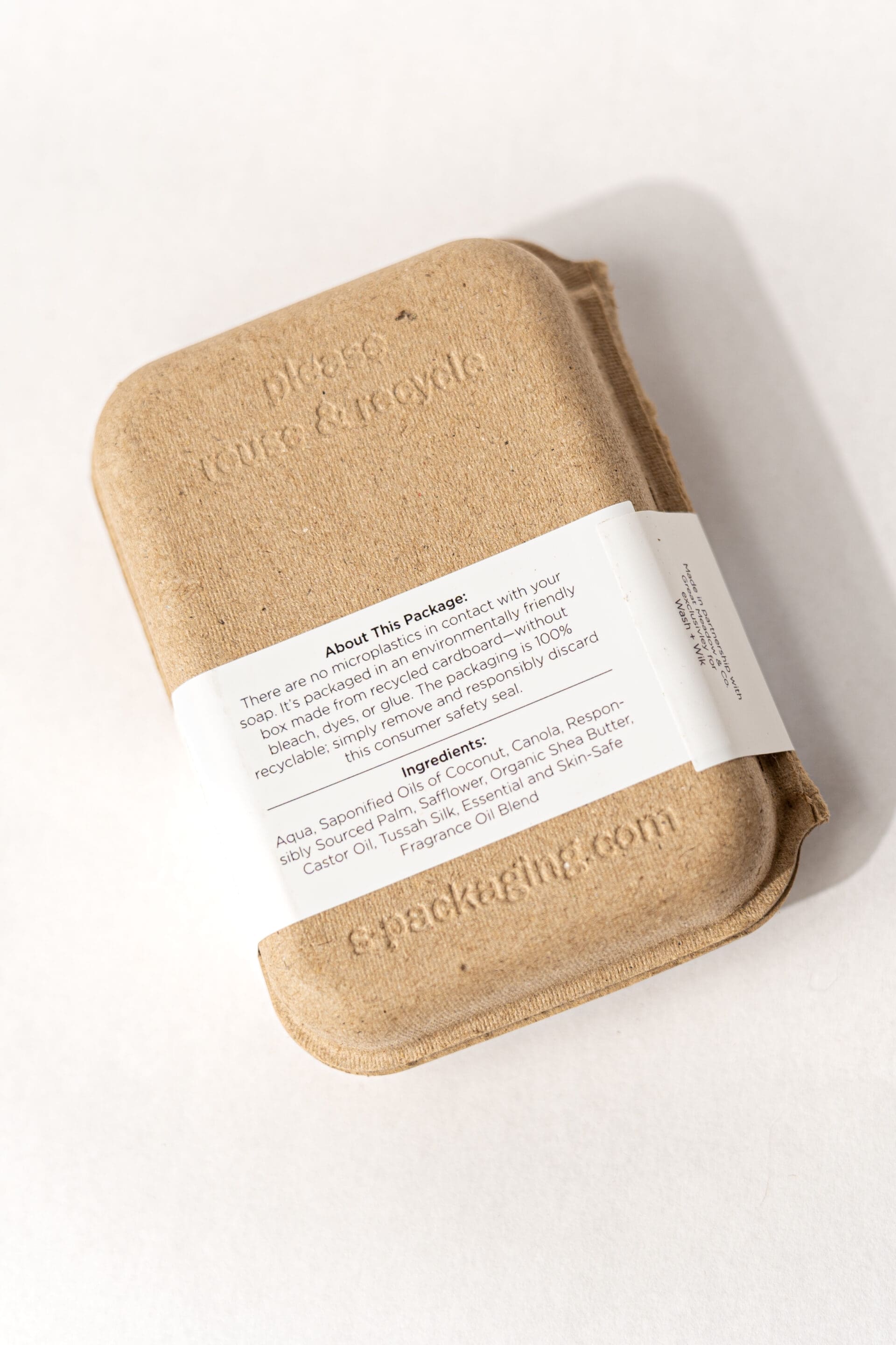 There are no microplastics in contact with your soap. Itโs packaged in an environmentally friendly box made from recycled cardboardโwithout bleach, dyes, or glue. The packaging is 100% recyclable; simply remove and responsibly discard this consumer safety seal.